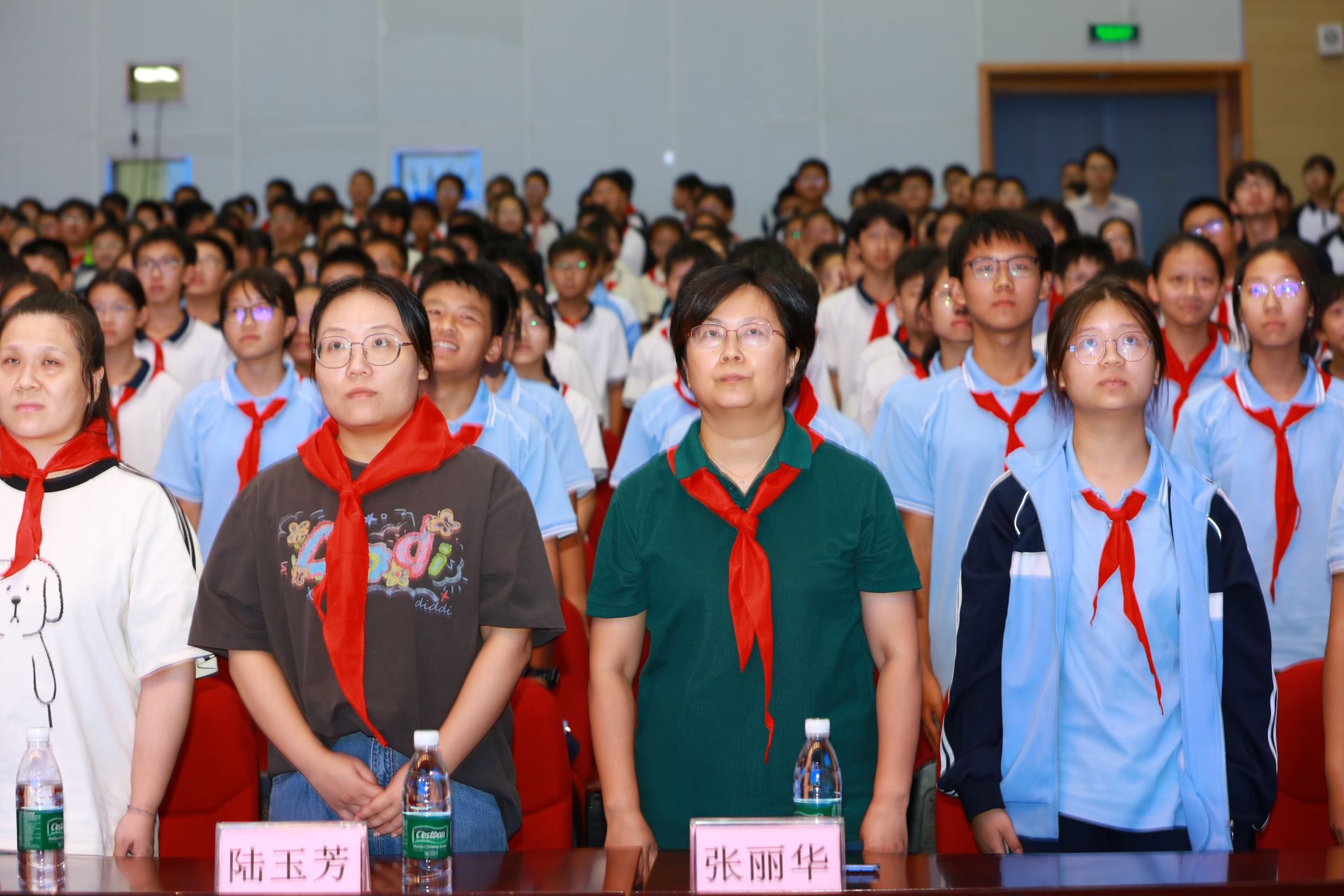 金秋时节,苏州市金阊实验中学校报告厅内队旗飘扬、氛围庄重,以“强国复兴有我,争做新时代好少年”为主题的2025年少先队建队仪式在此举行。校领导、校外嘉宾、初一中队辅导员及全体初一少先队员齐聚一堂,共同见证这一承载光荣与使命的时刻。仪式后,科学家精神主题宣讲活动接续开展,为队员们注入榜样力量。